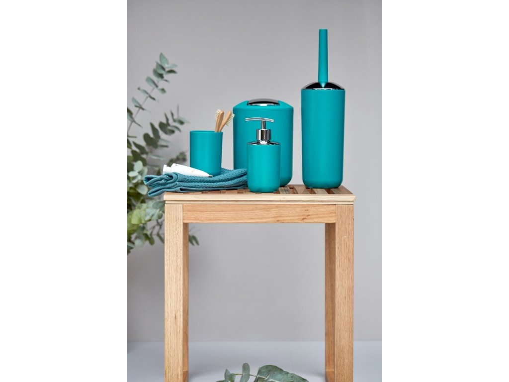 Het afgeronde ontwerp voegt een speciaal tintje toe aan elke badkamer. Dankzij het gladde oppervlak is de cosmeticamand bijzonder gemakkelijk schoon te maken en dus hygiënisch. Het verchroomde deksel vormt een aantrekkelijk contrast met het petrolkleurige basismateriaal. Het scharnierende deksel zorgt ervoor dat het gemakkelijk te hanteren is, maar verbergt toch de inhoud.