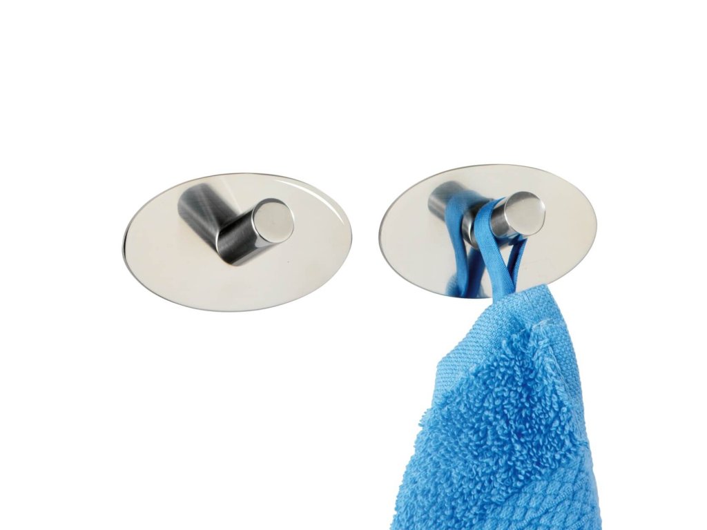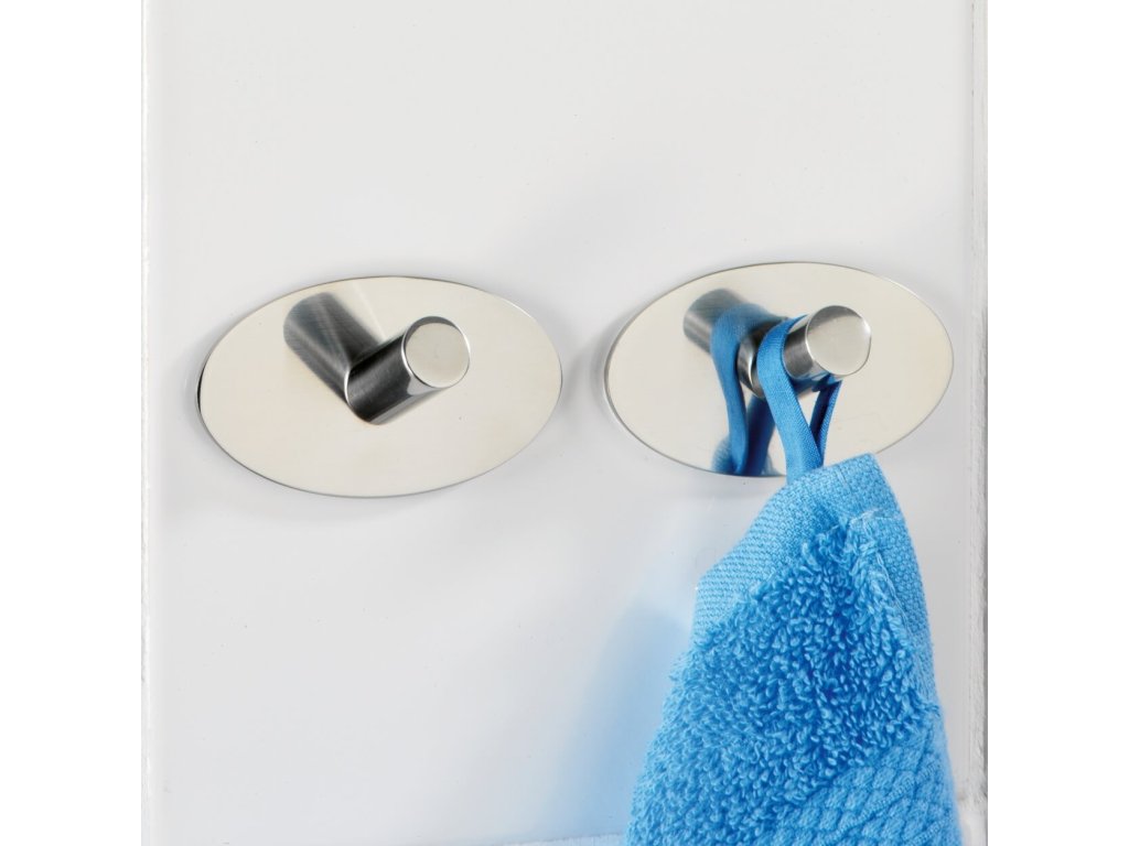 De hoogwaardige Piceno wandhaken in een duurzaam en sterk ontwerp zijn gemaakt van glanzend, corrosiebestendig roestvrij staal. De veelzijdige genieën zijn zowel ruimtebesparend als decoratief en zijn verkrijgbaar in een verpakking van 2 stuks. De haken in een modieus ovaal design zijn ideaal voor het ophangen van handdoeken, badjassen, washandjes of keukenhandschoenen in de badkamer of het gastentoilet, maar ook in de woonkamer. Ze zijn heel eenvoudig te bevestigen. Gewoon de beschermlaag eraf trekken en bevestigen.