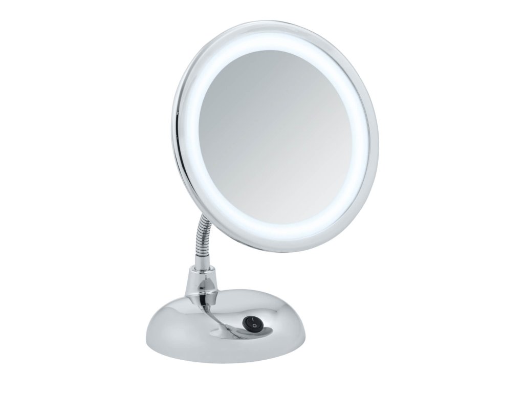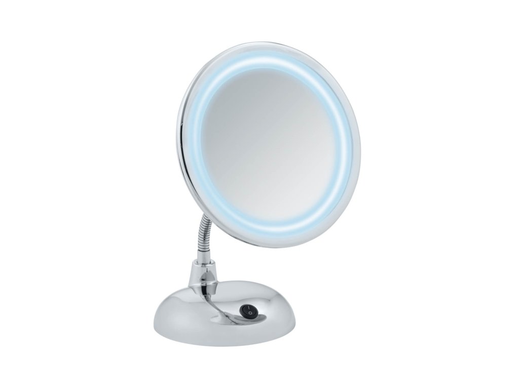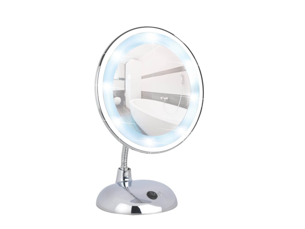 De Style cosmetische spiegel met LED-verlichting is een discrete en functionele toevoeging aan je badkamer. Met zijn 300% vergrotende spiegeloppervlak (Ø 16 cm) is hij bijzonder geschikt voor cosmetisch gebruik en wordt scheren en make-up aanbrengen een plezier. De decoratieve, verchroomde vloerspiegel kan individueel in alle richtingen worden versteld dankzij de elegante, flexibele hals.