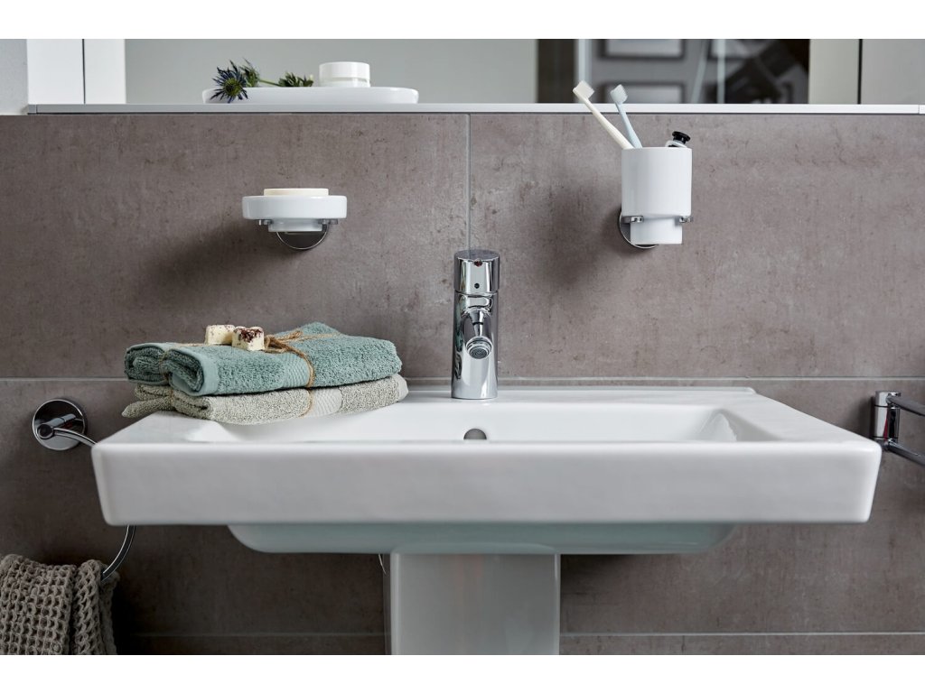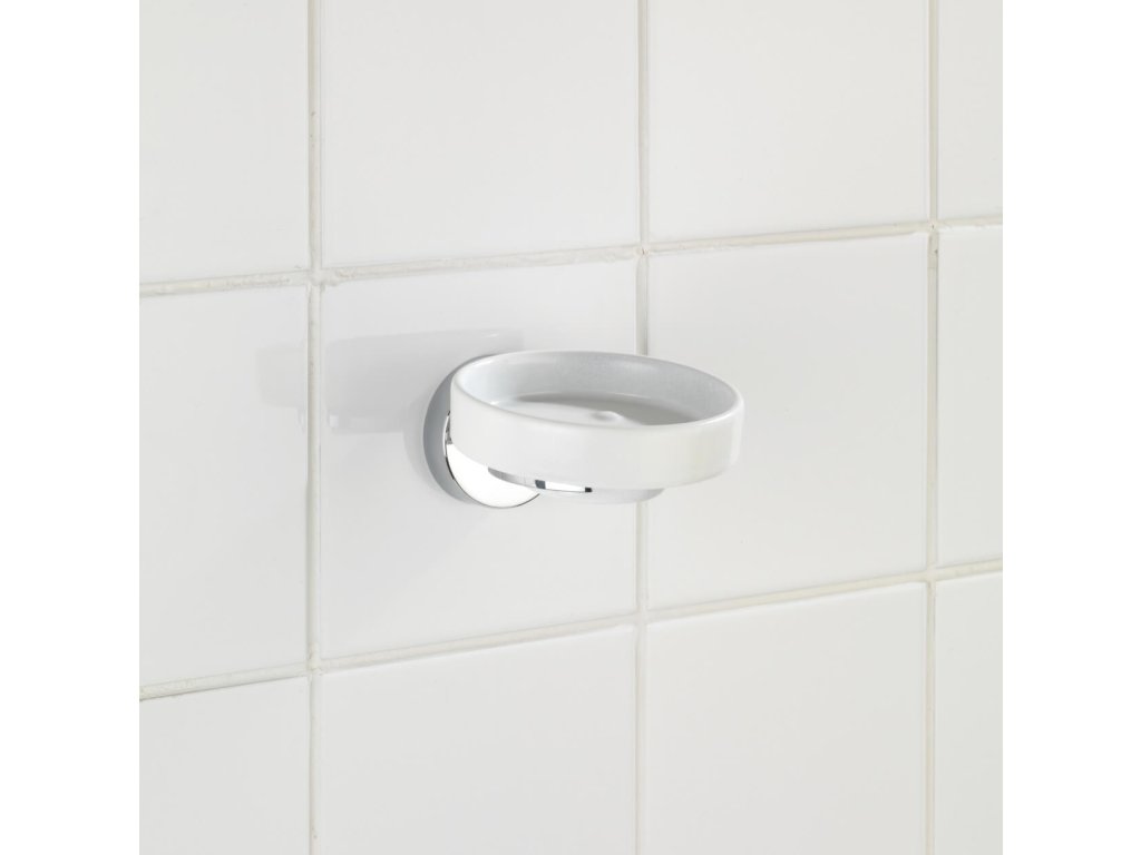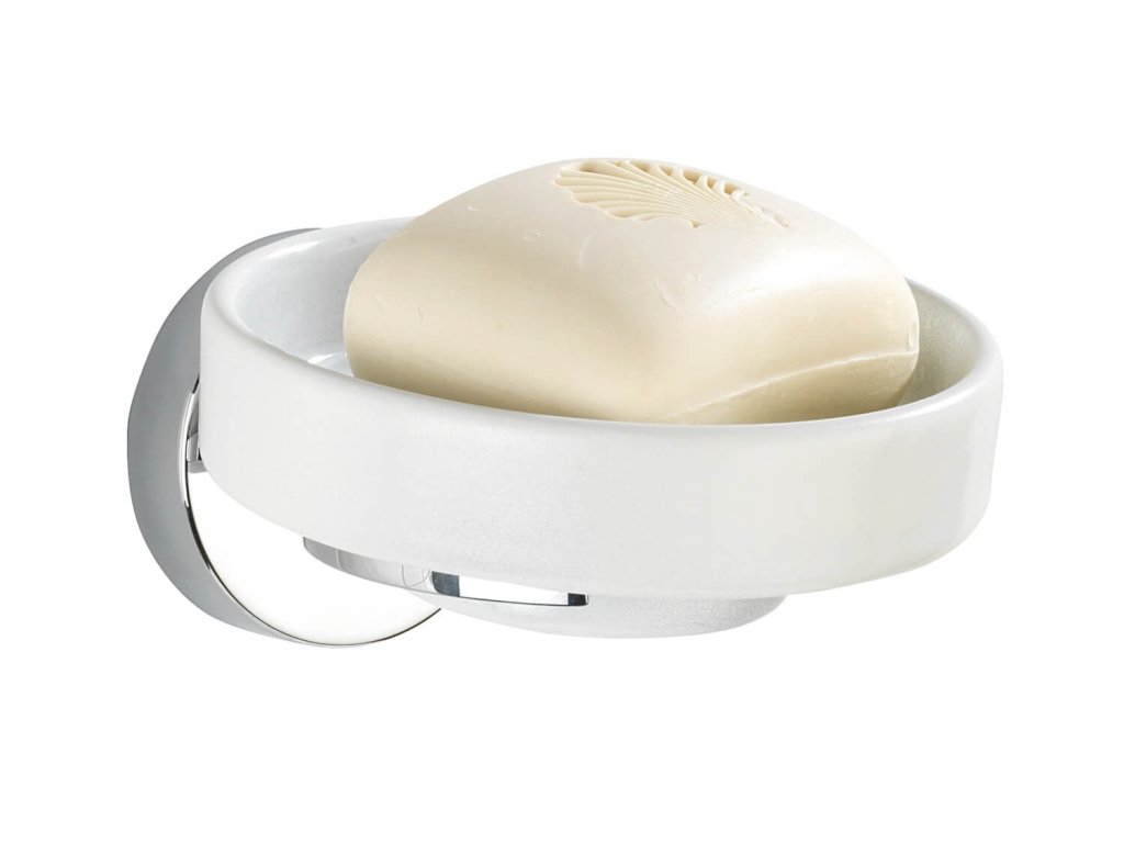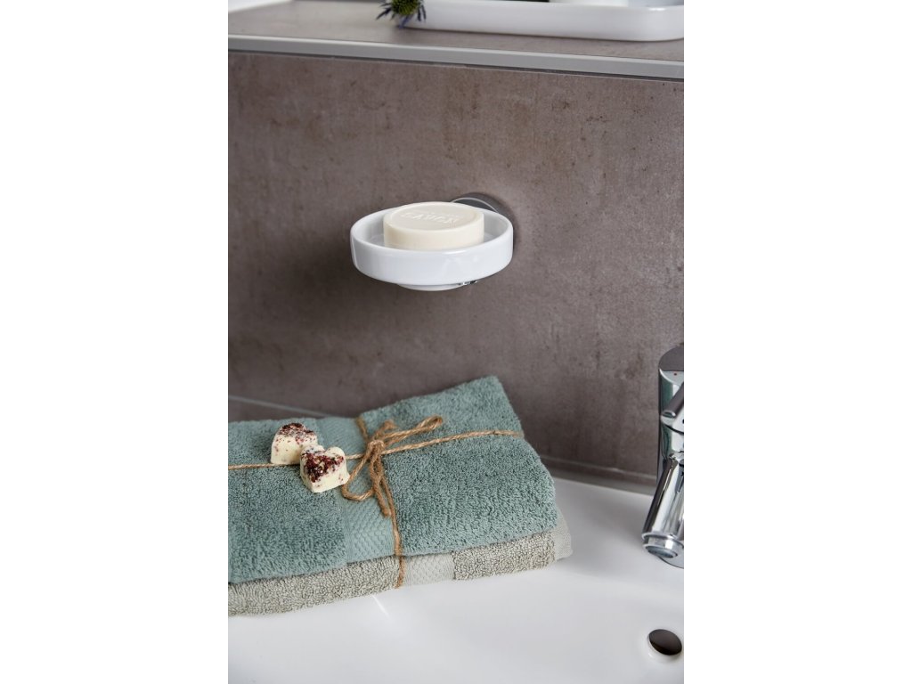 Het Vacuum-Loc® zeepbakje uit de Capri-serie is afneembaar en gemaakt van wit keramiek. De zeephouder is gemaakt van hoogwaardig, zwaar gegoten zink, dat verchroomd en corrosiebestendig is.